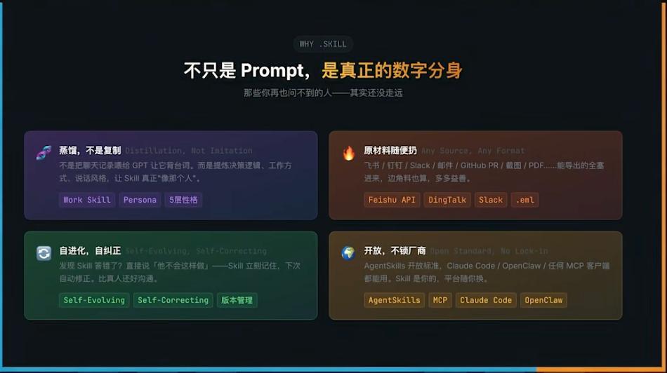 扒开花里胡哨的说辞,它本质上是一套提示词模板加聊天记录爬虫,然后大模型基于这些聊天记录,训练出一个能 cosplay 离职员工思维方式和说话风格的赛博 coser。